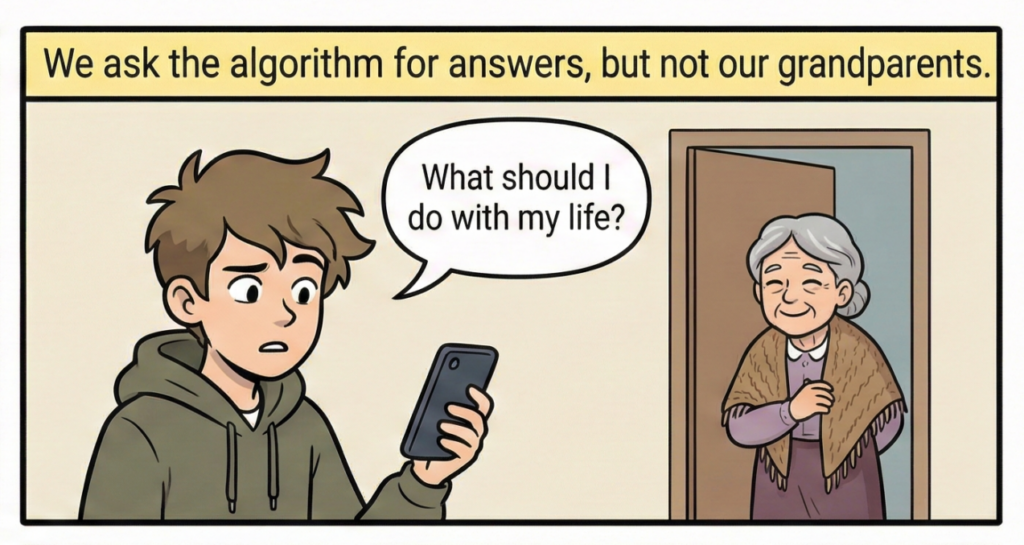 We ask an algorithm for answers,but not our grandparents.We upgrade our phones every year,our wisdom… never.
